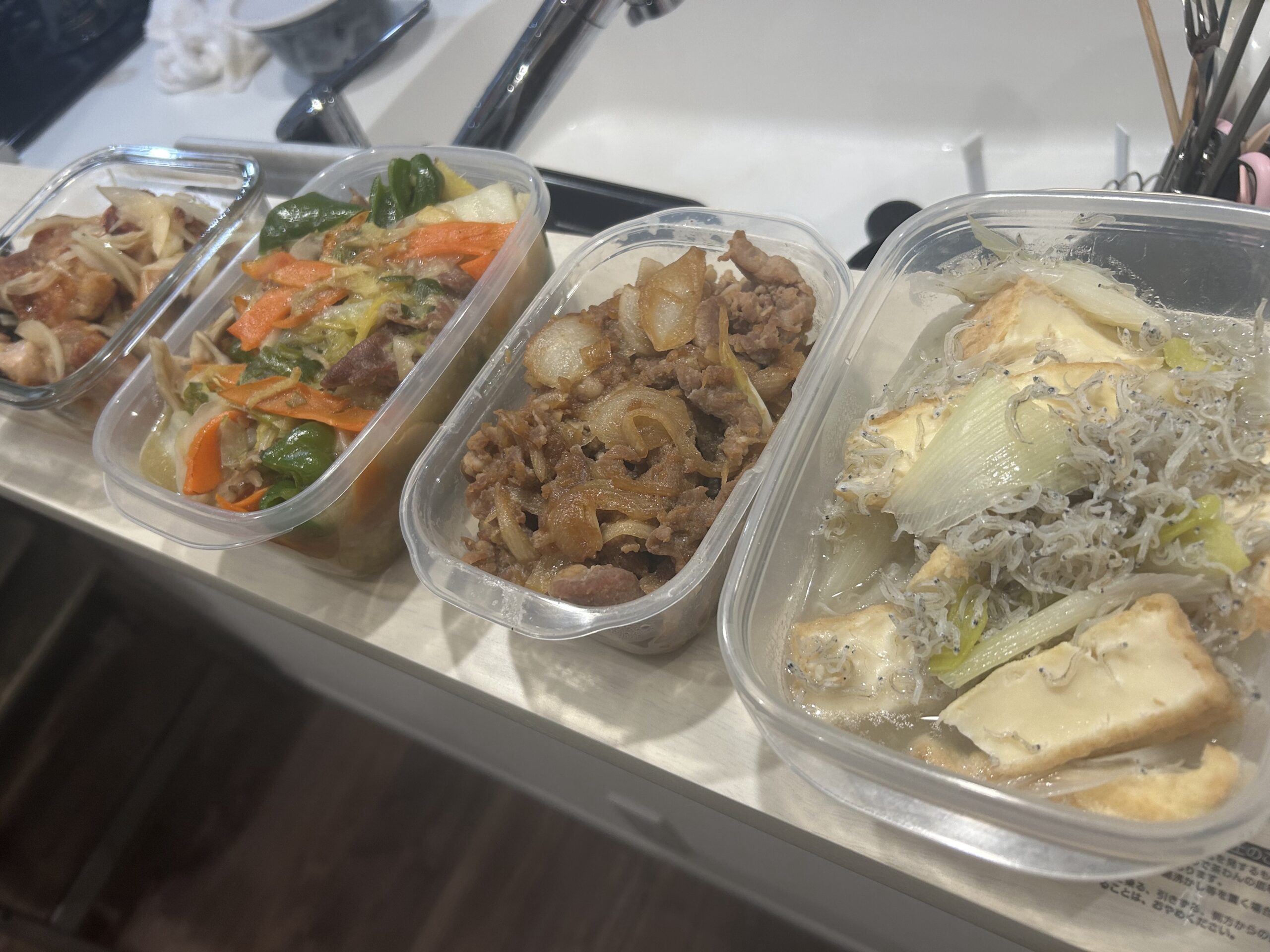 終了予定時間30分前ごろにふとキッチンを見ると、すでに3品ほどが保存容器に入って完成している様子。