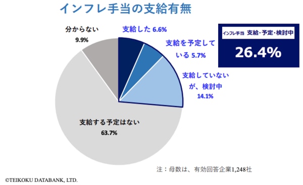 以下は株式会社帝国データバンクが「インフレ手当に関する企業の実態アンケート」を実施したデータです。