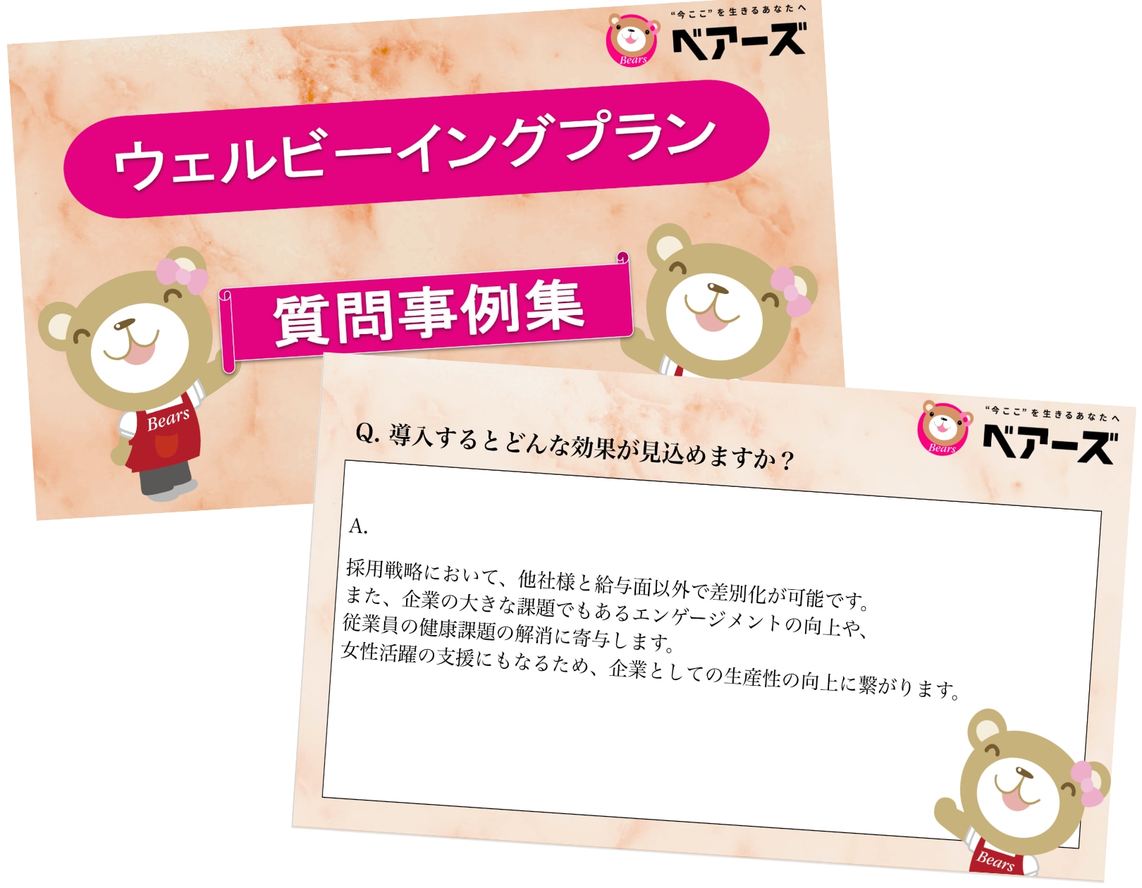 ベアーズの福利厚生サービスであるウェルビーイングプランは、働き方改革や少子高齢化による人材価値の向上、SDGsや経済産業省が推奨する「健康経営」という考え方が浸透してきた社会に対して最適なサービスを提供しようと考えた結果、2021年の2月に誕生しました。