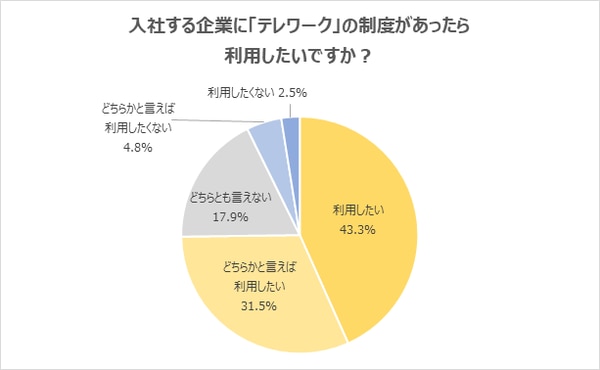 「出社」を希望する新社会人が多い中、「入社する企業にテレワークの制度があったら利用したいか」という質問に対しては、