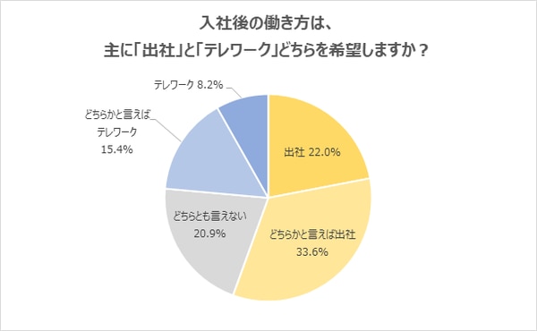 23卒新社会人が希望する働き方は「出社」が半数超え。「テレワーク」希望者の2倍以上に